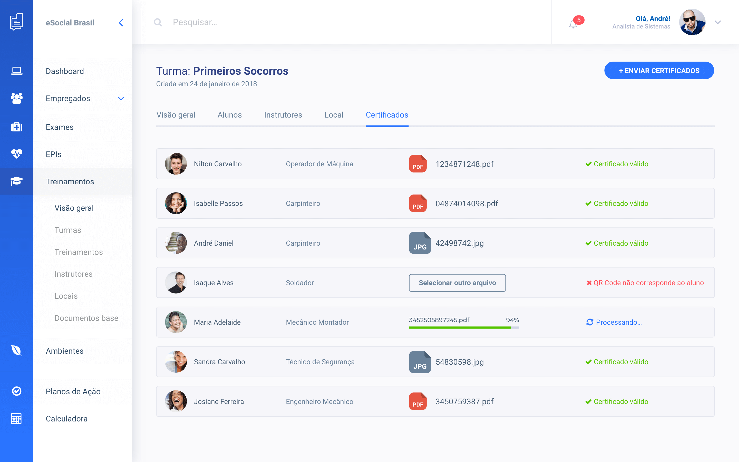 E se alguém estiver preocupado com a quantidade de papel, certificados, lista de presenças, avaliações, e o risco de perdê-los e ainda ser penalizado, com a plataforma eSocial Brasil isso não vai acontecer. Há espaço para você colocar todos os documentos.